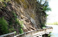 We took the River Walk Trail, which took use through the woods down to a boardwalk that was built into the side of the rock cliffs and took you for about a mile down the edge of the Tennessee River and past the opening of an old cave.
